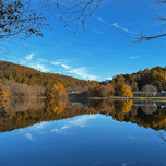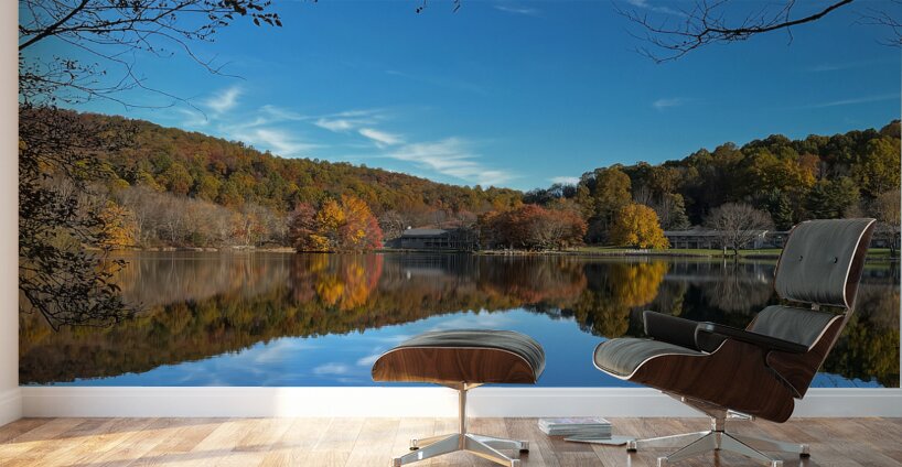 Autumn whispers across Abbott Lake where nature mirrors itself in perfect harmony and the Peaks of Otter Lodge watches over the still waters like a ti...[+]